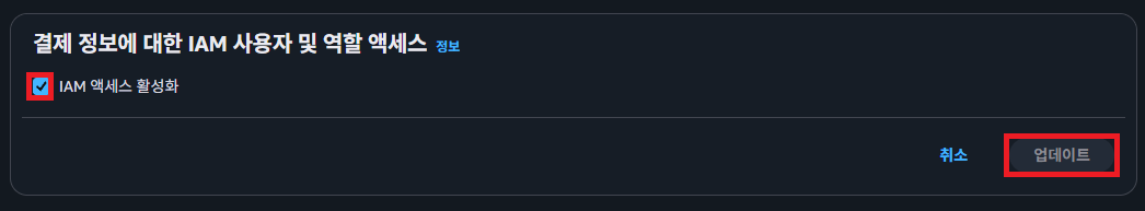 - 관리를 제외한 모든 작업은 IAM 계정을 생성하여 사용하는 것을 권장하며, 결제 관련 내용은 루트 계정에서 허용해줘야 한다.