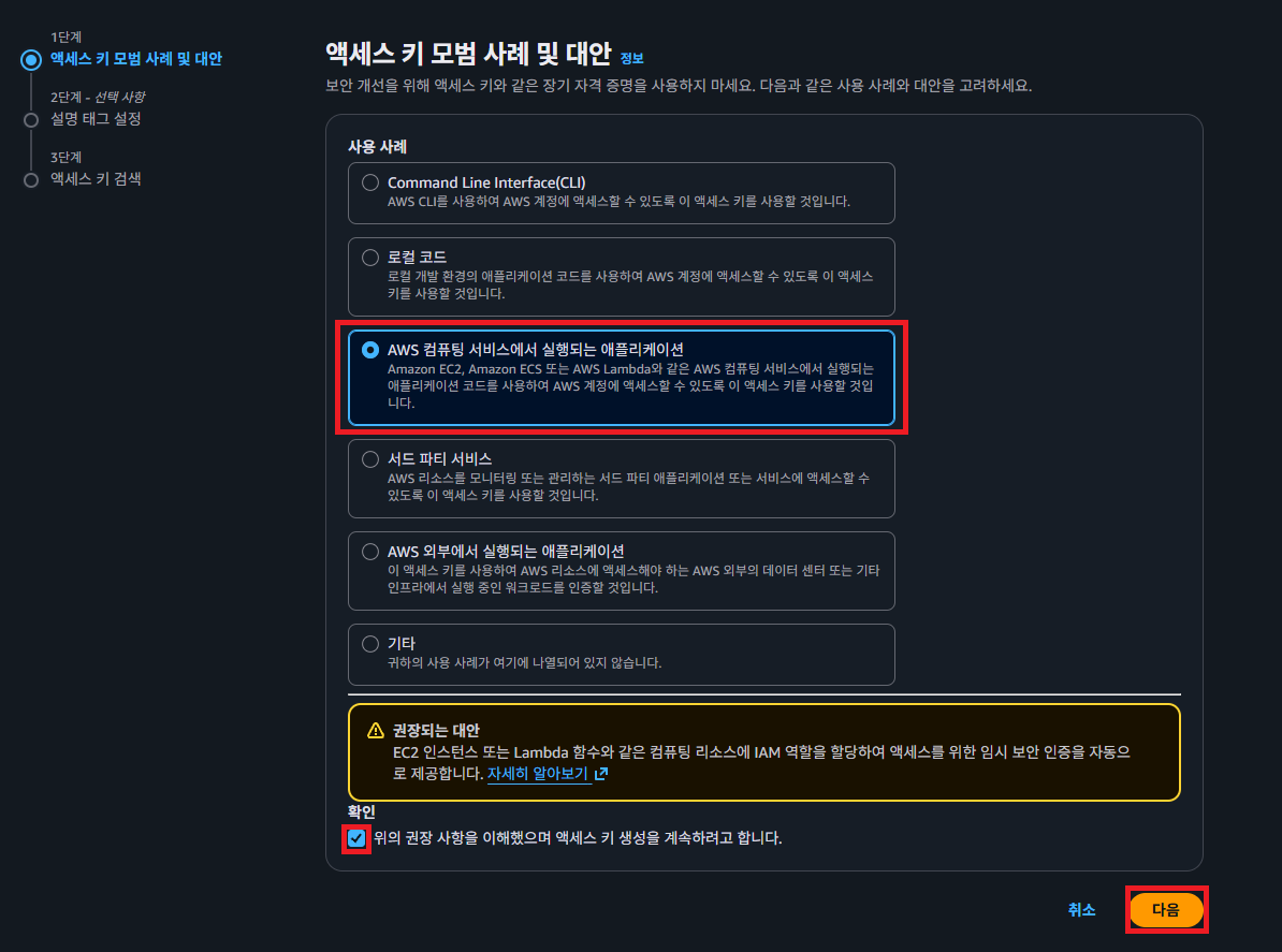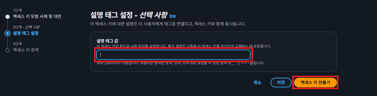 [태그 값 작성 후 엑세스 키 만들기 클릭]